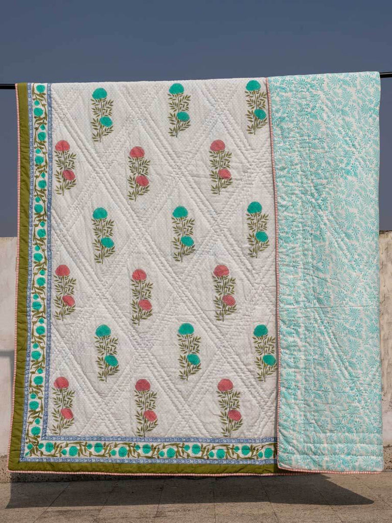 Spring Time Block Printed Cotton Pinwheel Cushion With Filler - 16 Inch