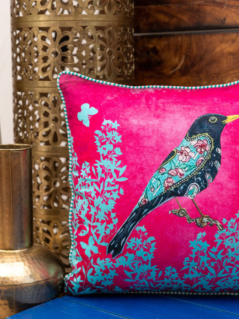Sunheri Chidiya Cotton Cushion Cover - 16 Inch