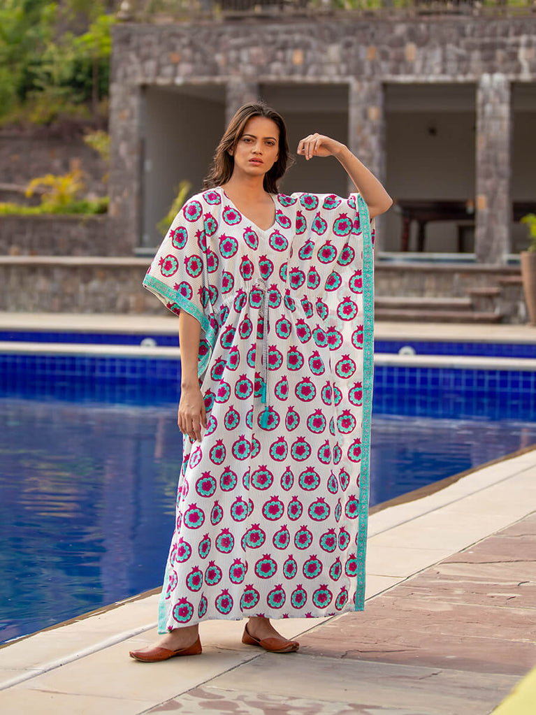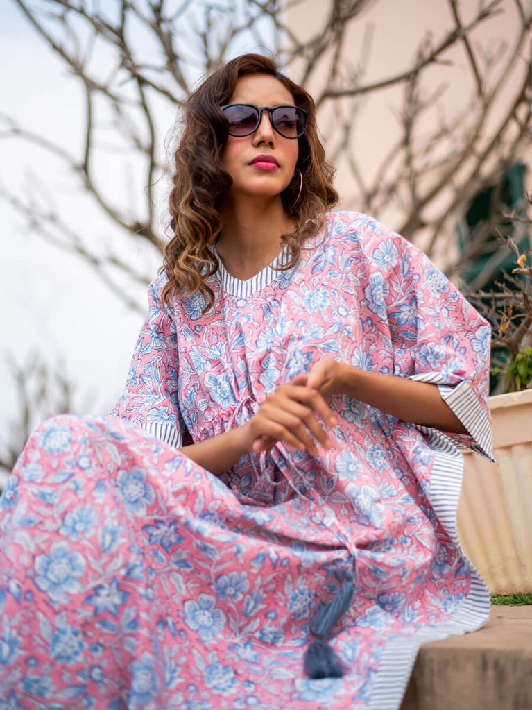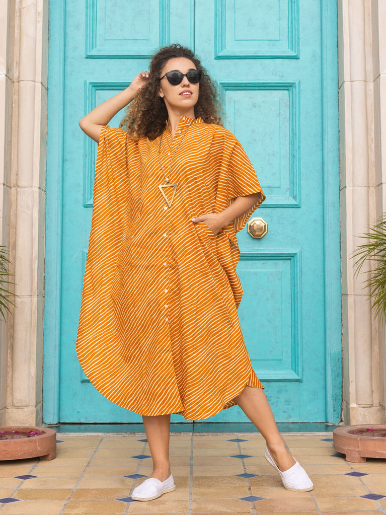 Sunset and Wine Cotton Kaftan Shirt Dress