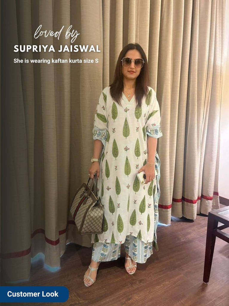 Tuscan Cypress Slub Hand Block Printed Kaftan Kurta