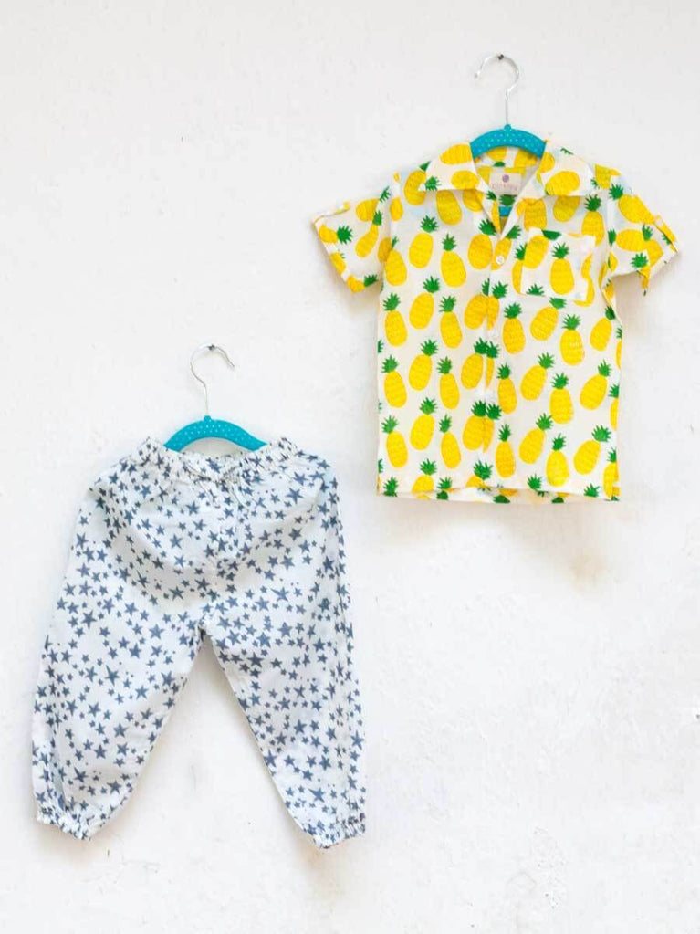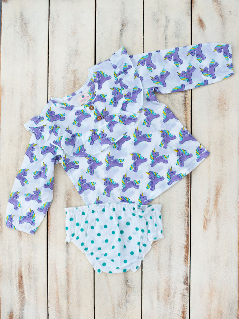 Unicorn Block Printed Cotton Top & Pyjama Set