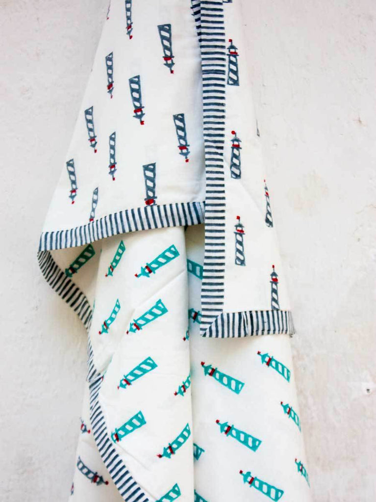 Turquoise Lighthouse Organic Cotton Dohar for Infants