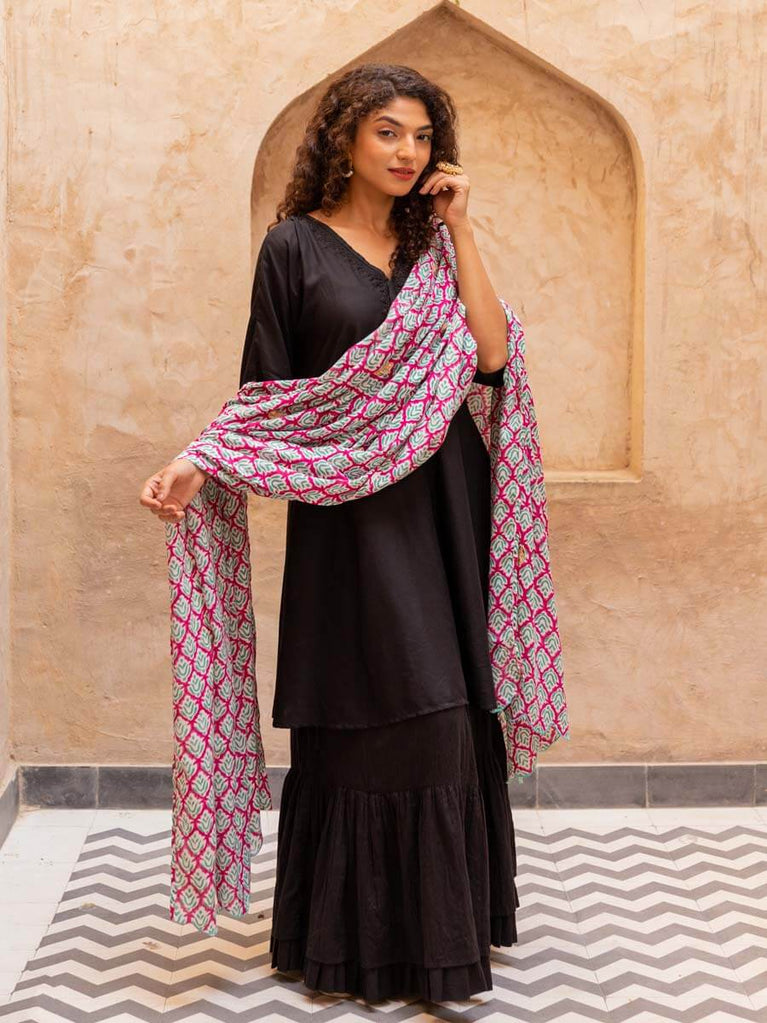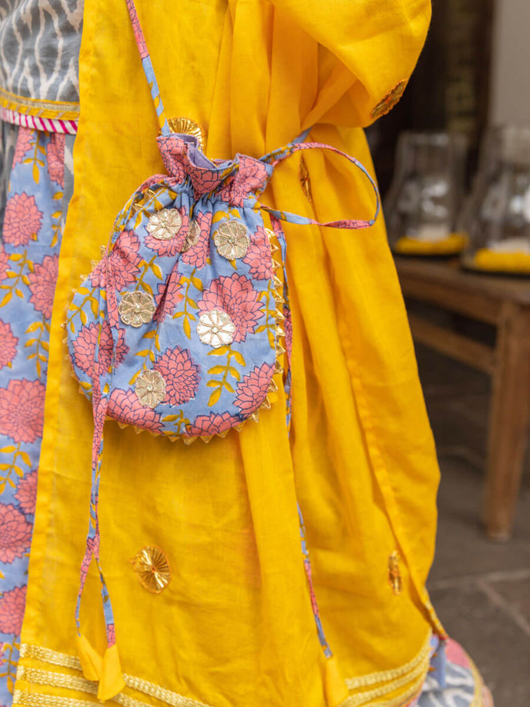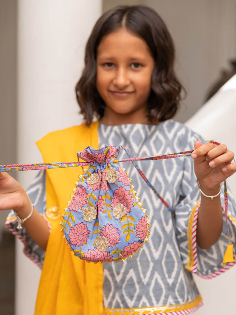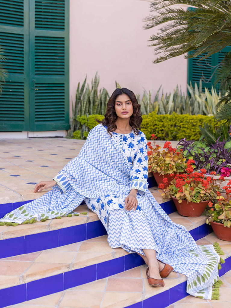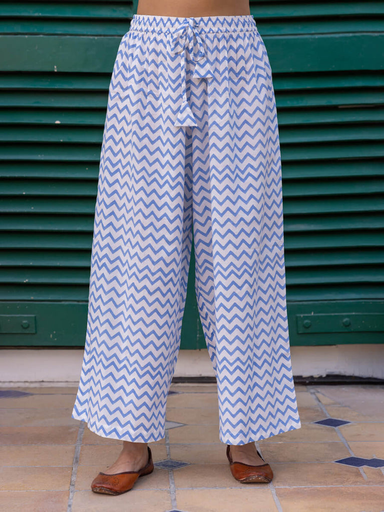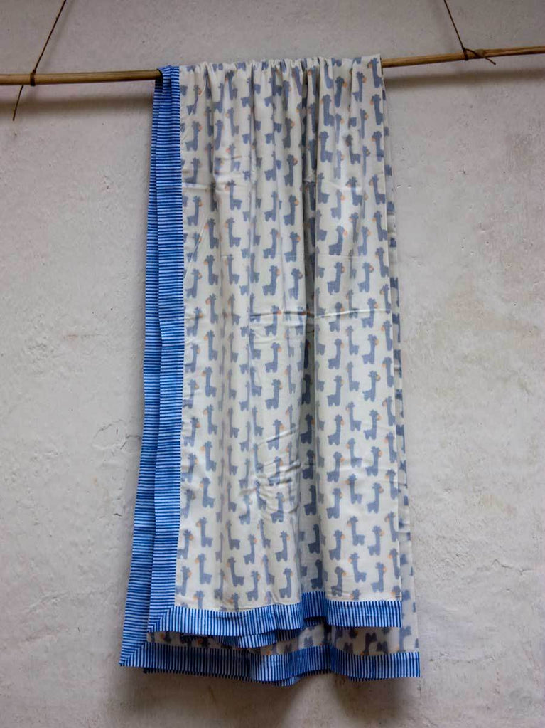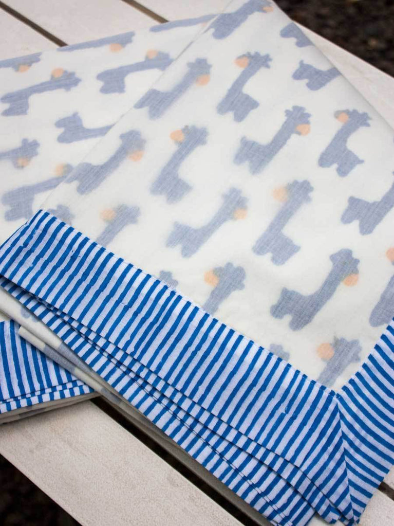 Blue Giraffe Block Printed Cotton Top & Pyjama Set