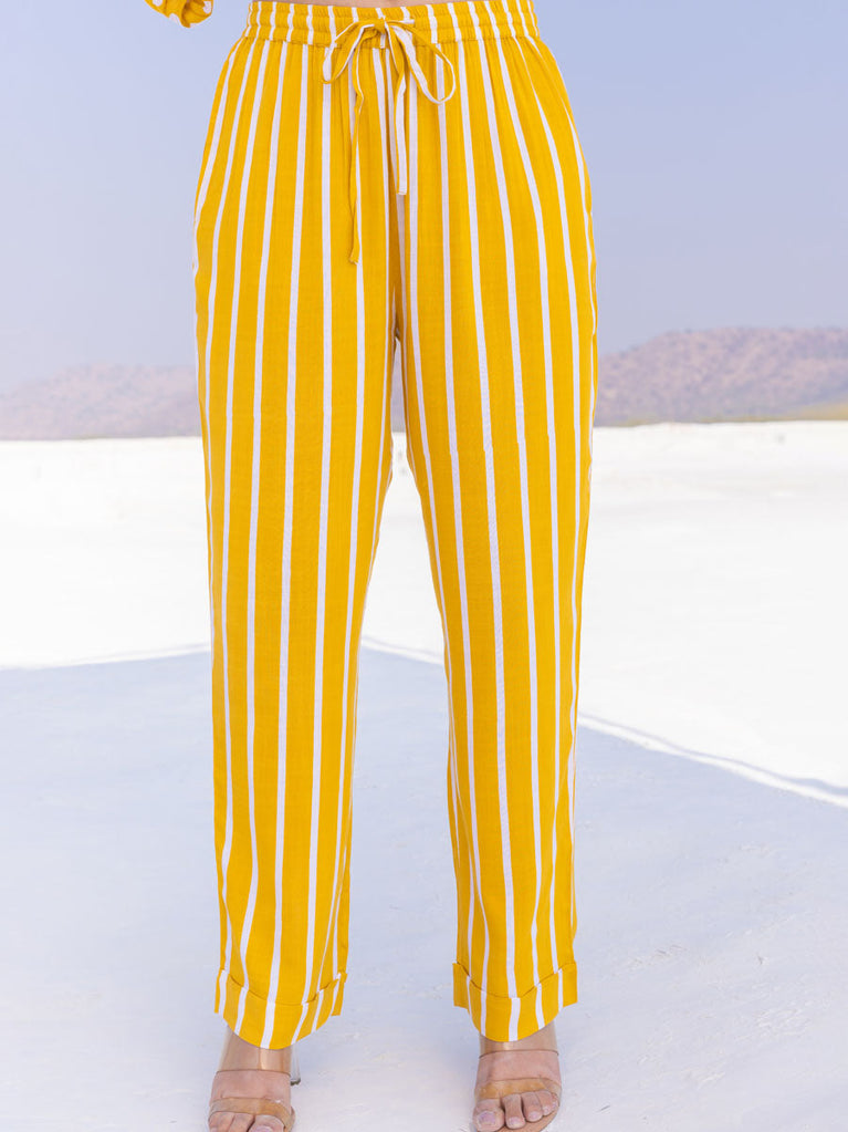 Yellow Stripes Organic Cotton Block Printed Kurta