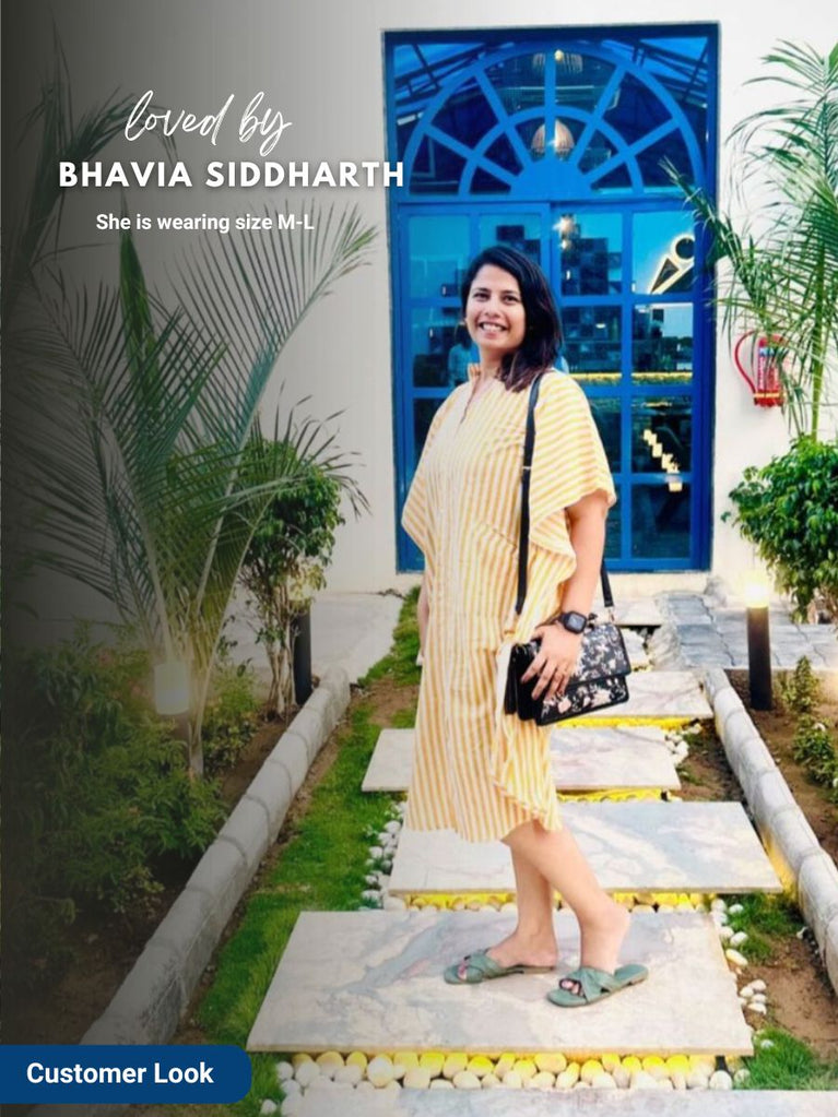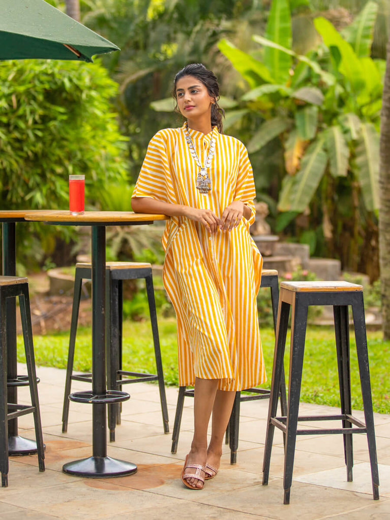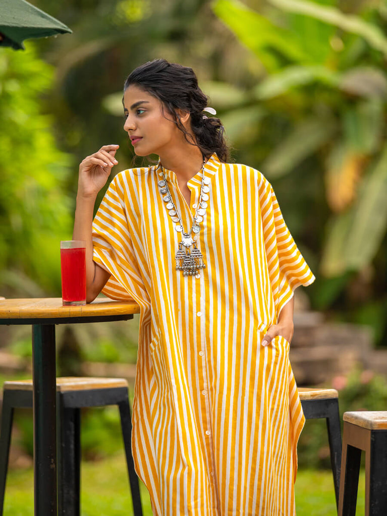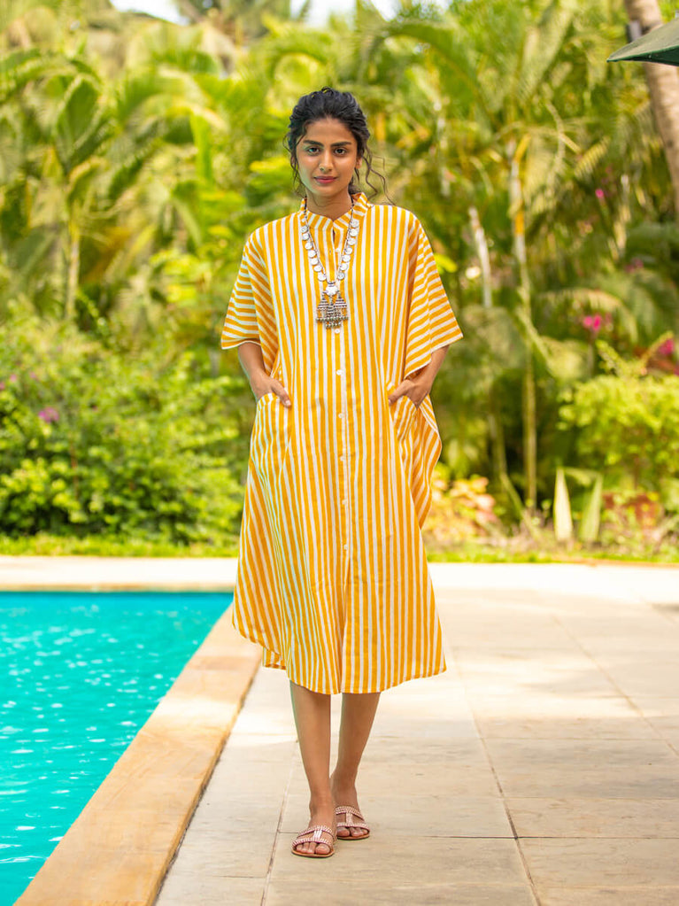 Yellow Stripes Kaftan Cotton Shirt Dress