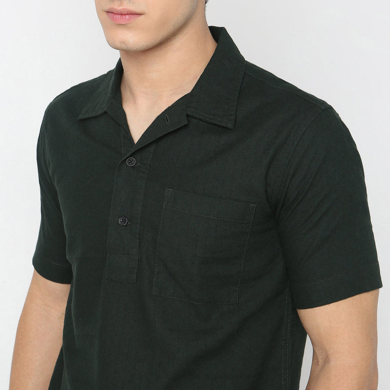 BAE™ Shirt - Camp Collar With Half Placket - Double Tone Fabric - Regular Fit