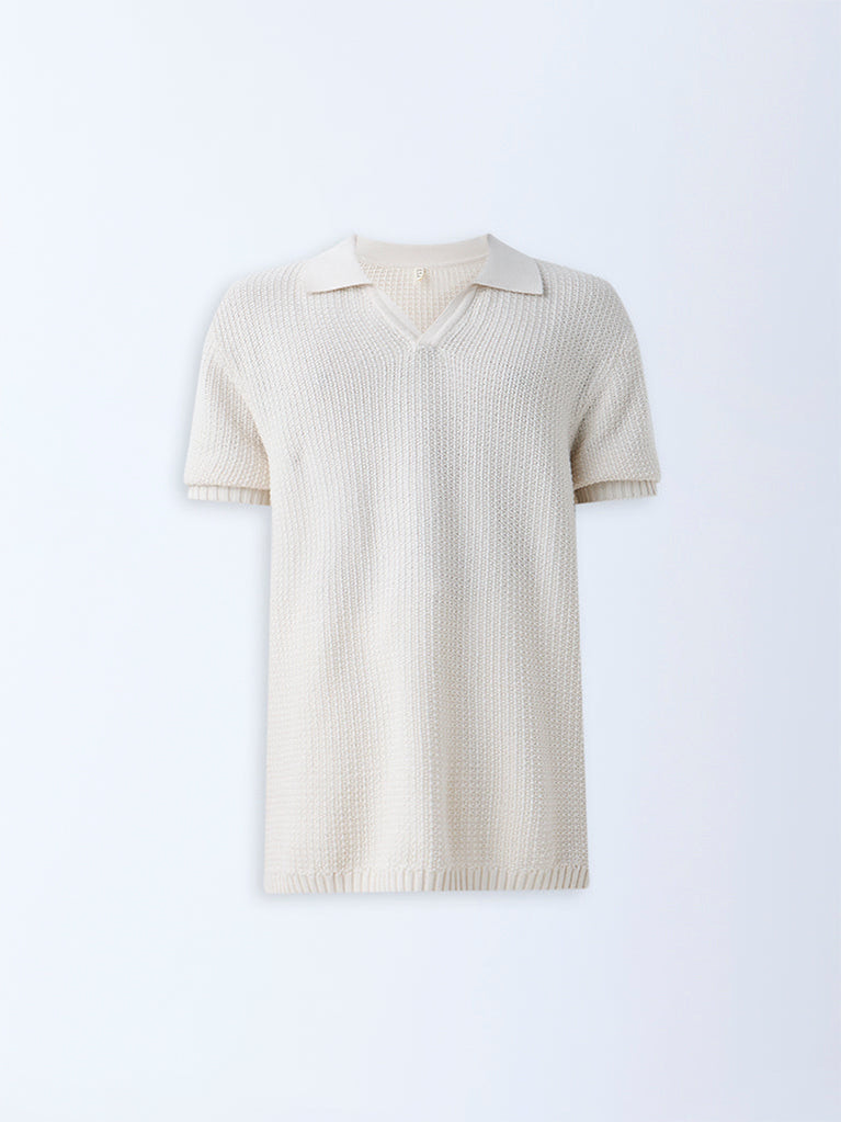 ETA Off-White Knitted Relaxed-Fit Polo T-Shirt