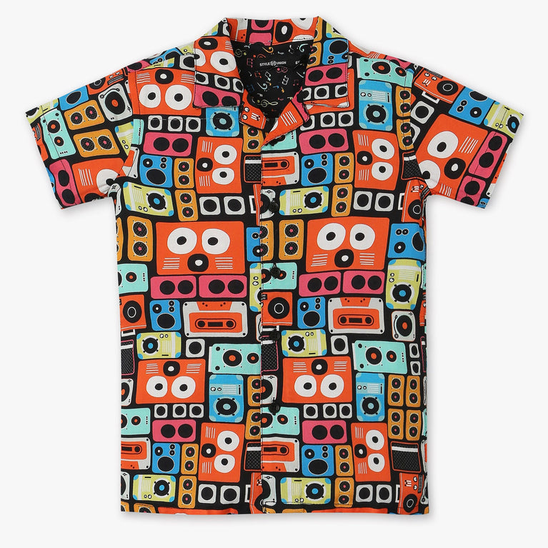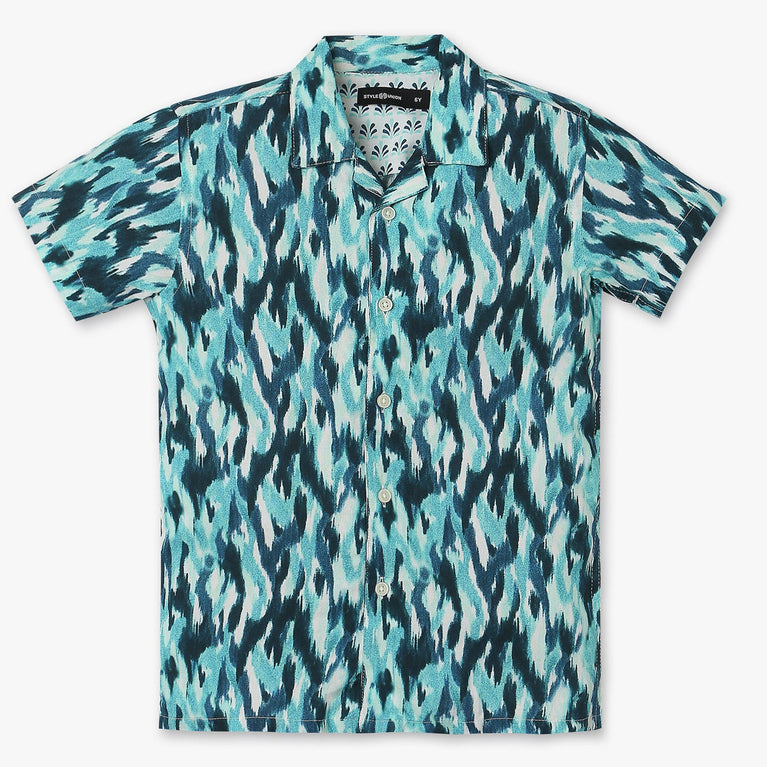 These printed pattern shirt has camp collar and half sleeve. Made from viscose, your kid's feel comfortable wearing the product.