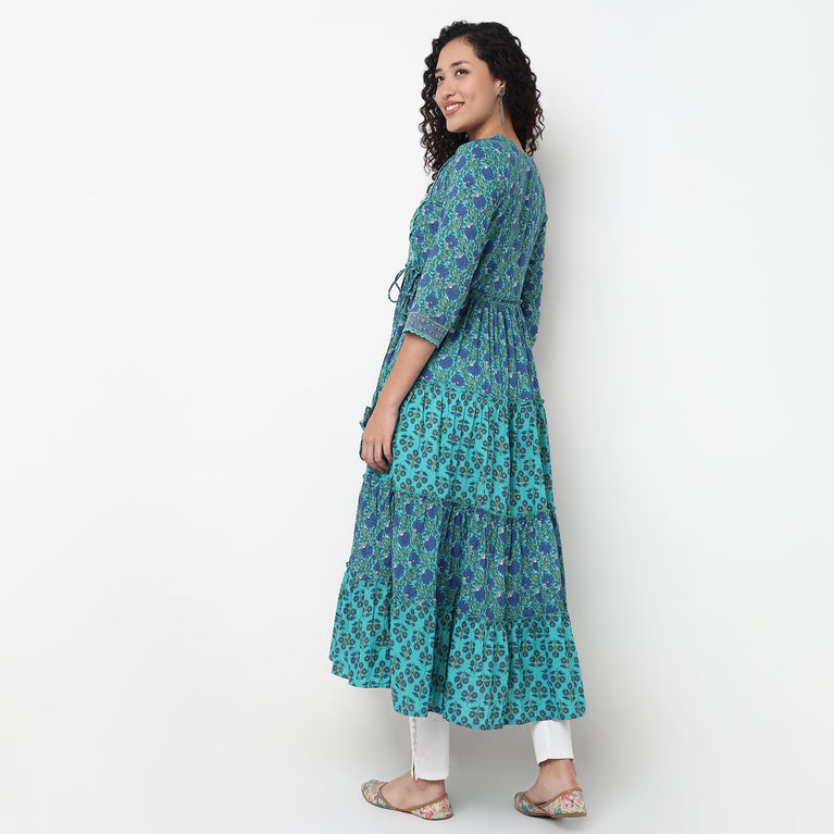 Experience the perfect blend of comfort and style with our V-Neck Printed Cotton Flared Kurta. Crafted from 100% cotton, this kurta offers a breathable and soft touch against your skin, making it ideal for all-day wear. The flared fit provides a graceful silhouette, allowing you to move with ease and confidence.