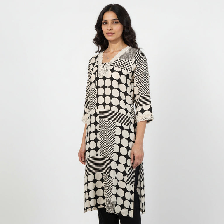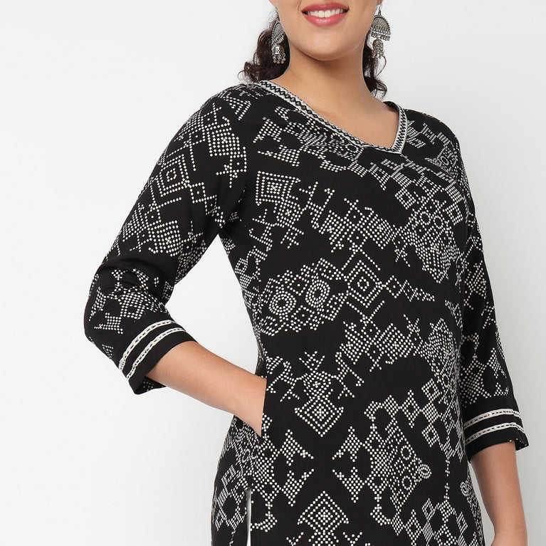 Elevate your wardrobe with our V Neck With Gusset Printed Kurta, designed for the modern woman. Crafted from lightweight rayon, this stylish kurta combines comfort with elegance, making it perfect for any occasion.