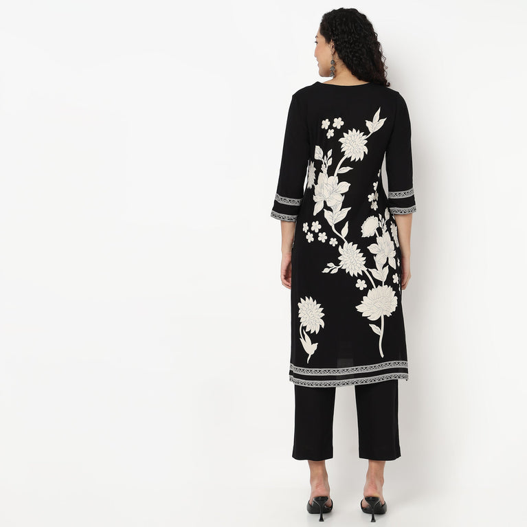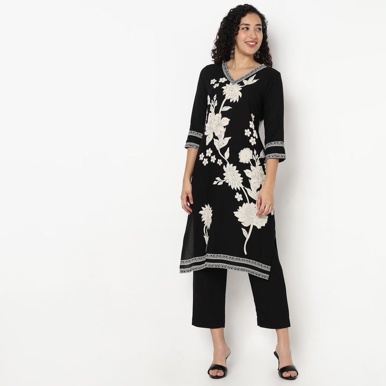 Experience the perfect blend of comfort and style with our V-Neck Printed Kurta Pant Set. Crafted from 100% Rayon, this ensemble offers a soft and breathable feel, making it ideal for all-day wear. The vibrant printed pattern adds a touch of elegance, while the straight fit ensures a flattering silhouette for any body type.