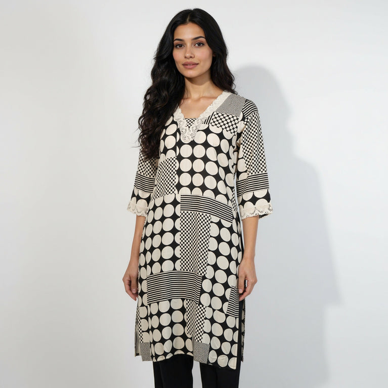 Style it with leggings or palazzos for a complete look that blends comfort and fashion effortlessly.
