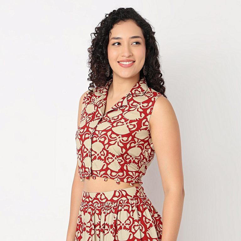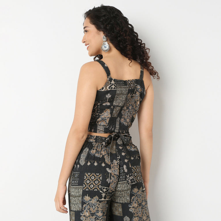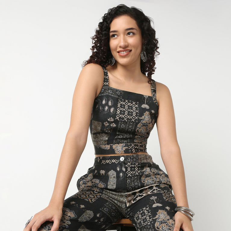 Embrace modern elegance with our Strappy Printed Crop Top, designed for those who love to make a statement. Crafted from 100% Rayon, this top offers a luxurious feel against the skin, ensuring all-day comfort and breathability. The vibrant printed pattern adds a touch of playfulness, making it a versatile piece for any wardrobe.