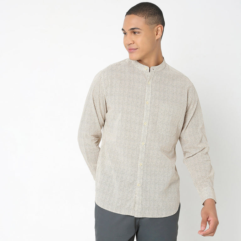 This printed pattern shirt has a mandarin collar and full sleeve. Made from cotton, it is soft and comfortable to wear.