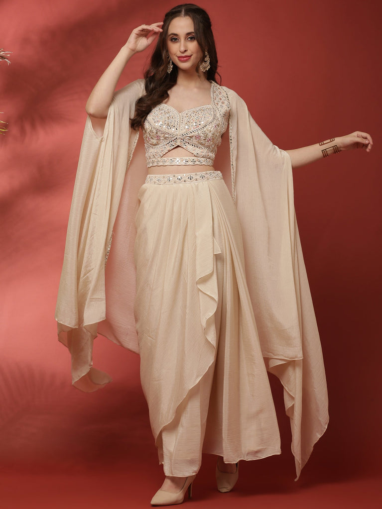 Cream Handwork Blouse Skirt Set With Jacket