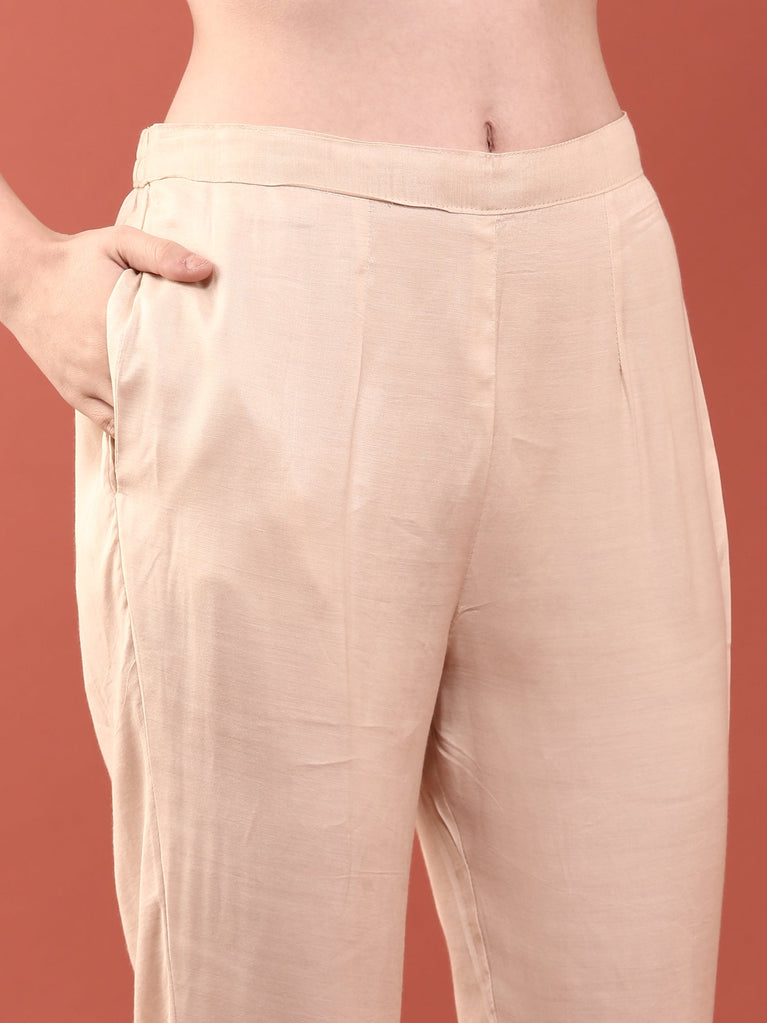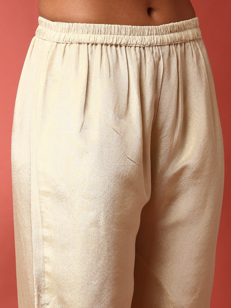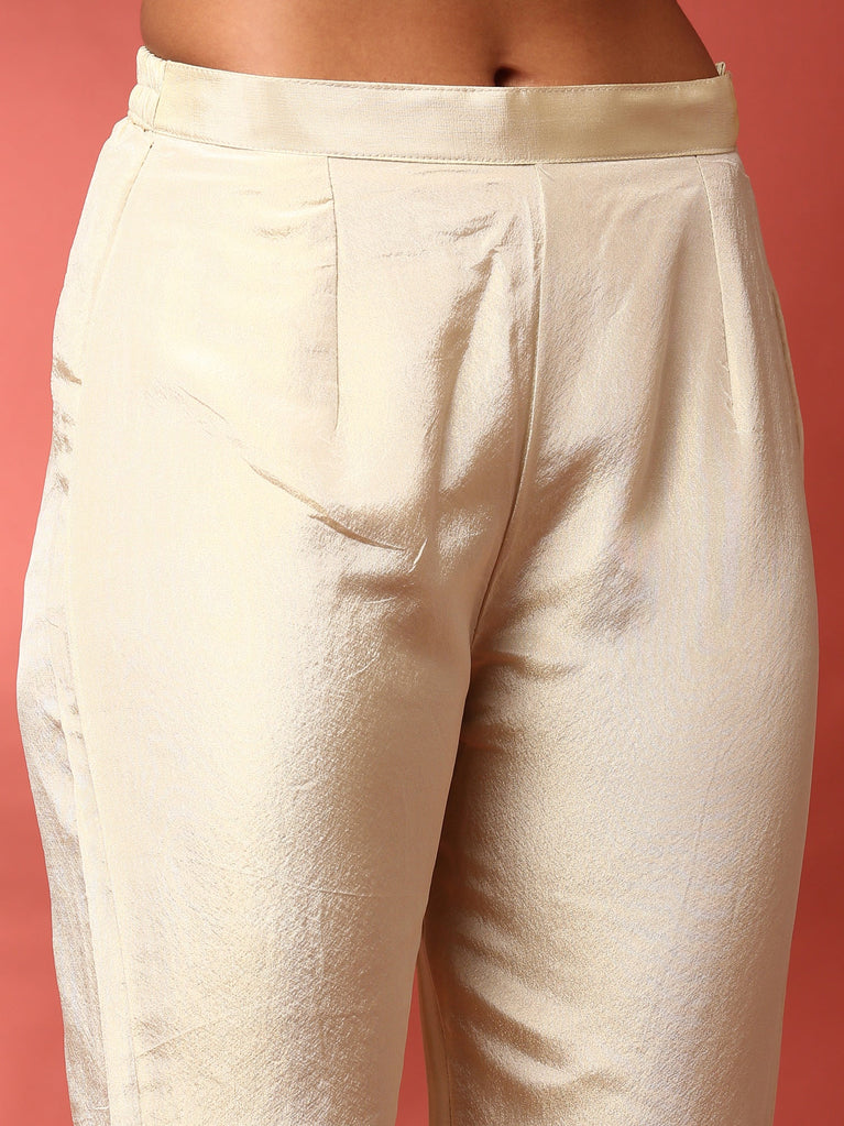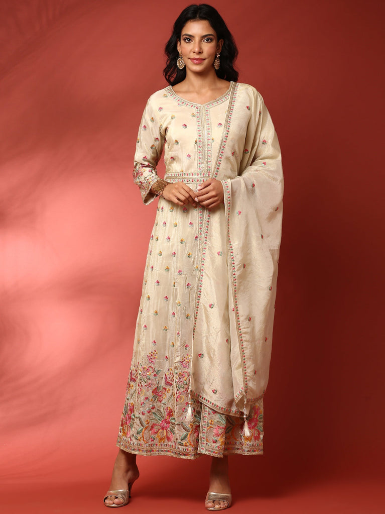 Cream Chanderi Embroidery Three Piece Set