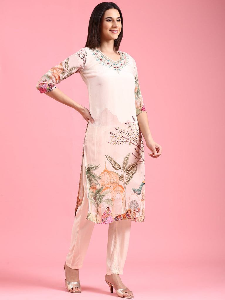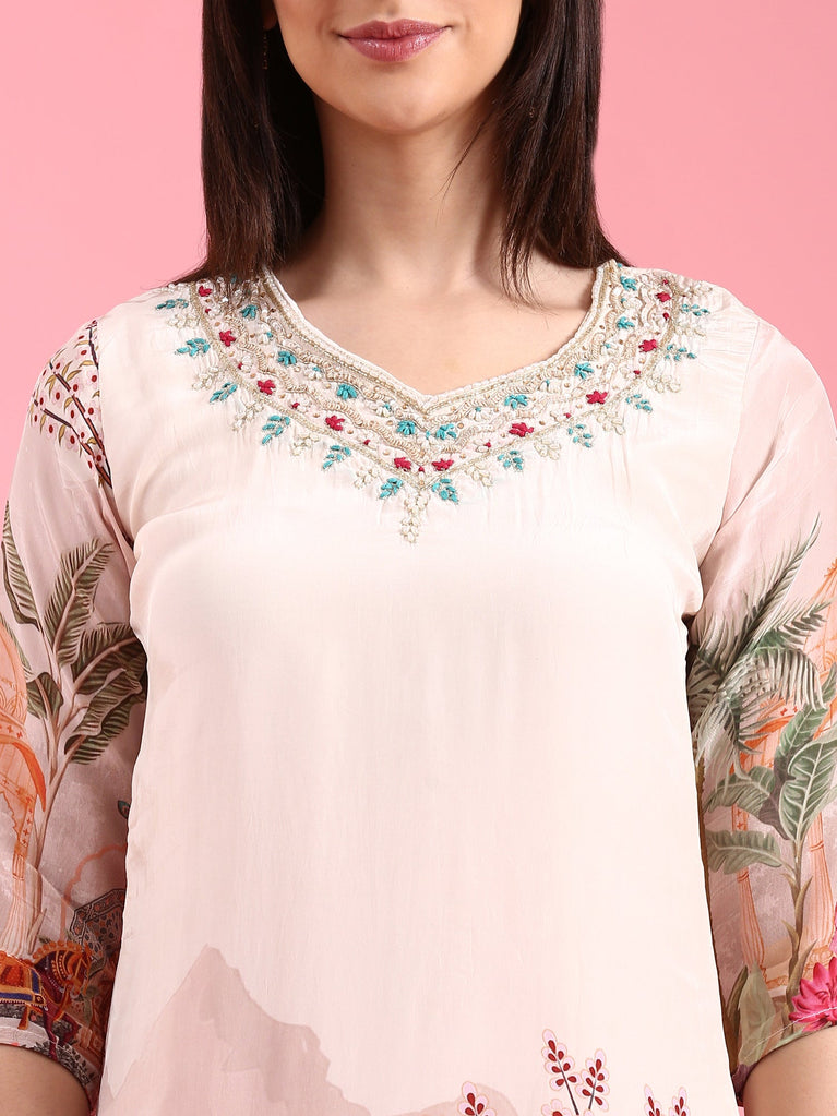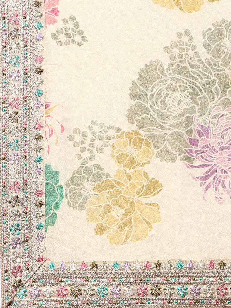 Cream Crepe Digital Print Three Piece Set