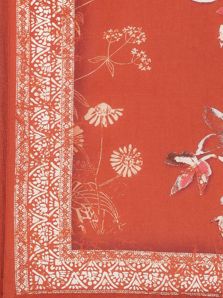 Burnt orange Digital printed crepe Three piece suit set