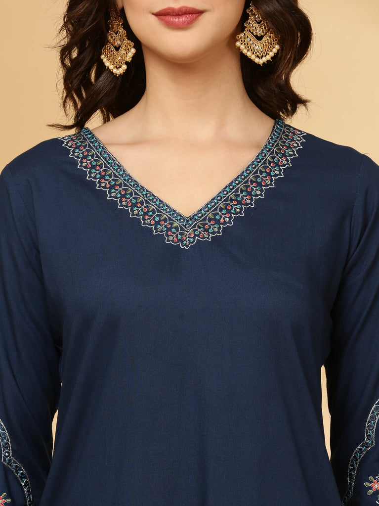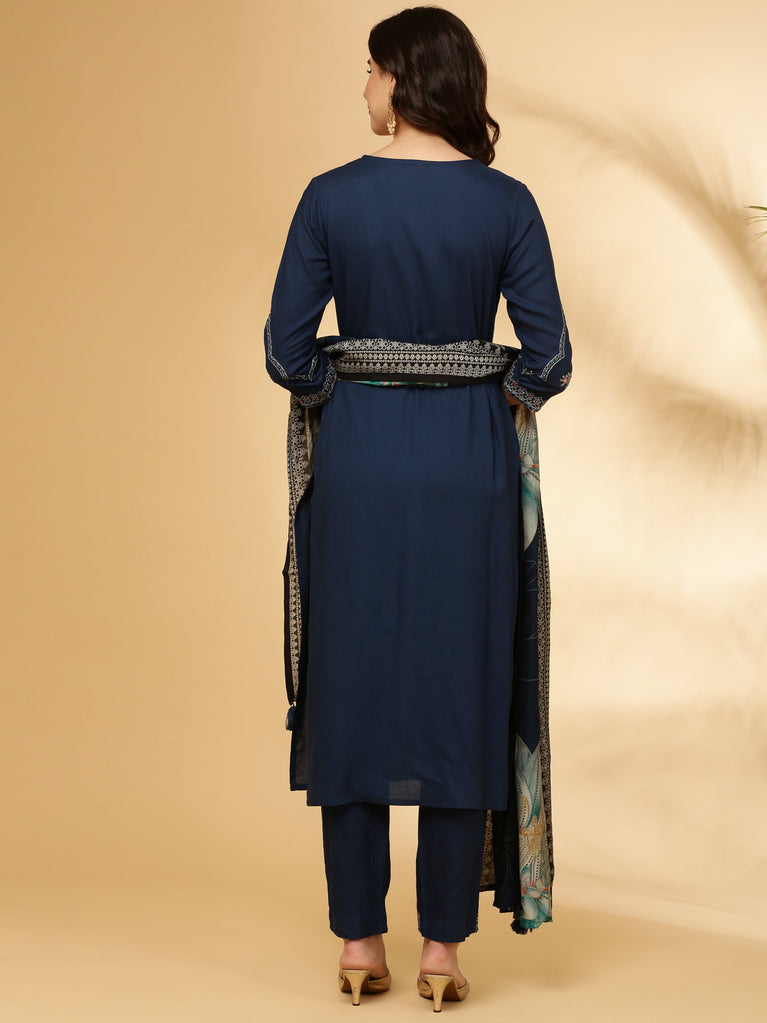 Cobalt Rayon Three Piece Suit Set