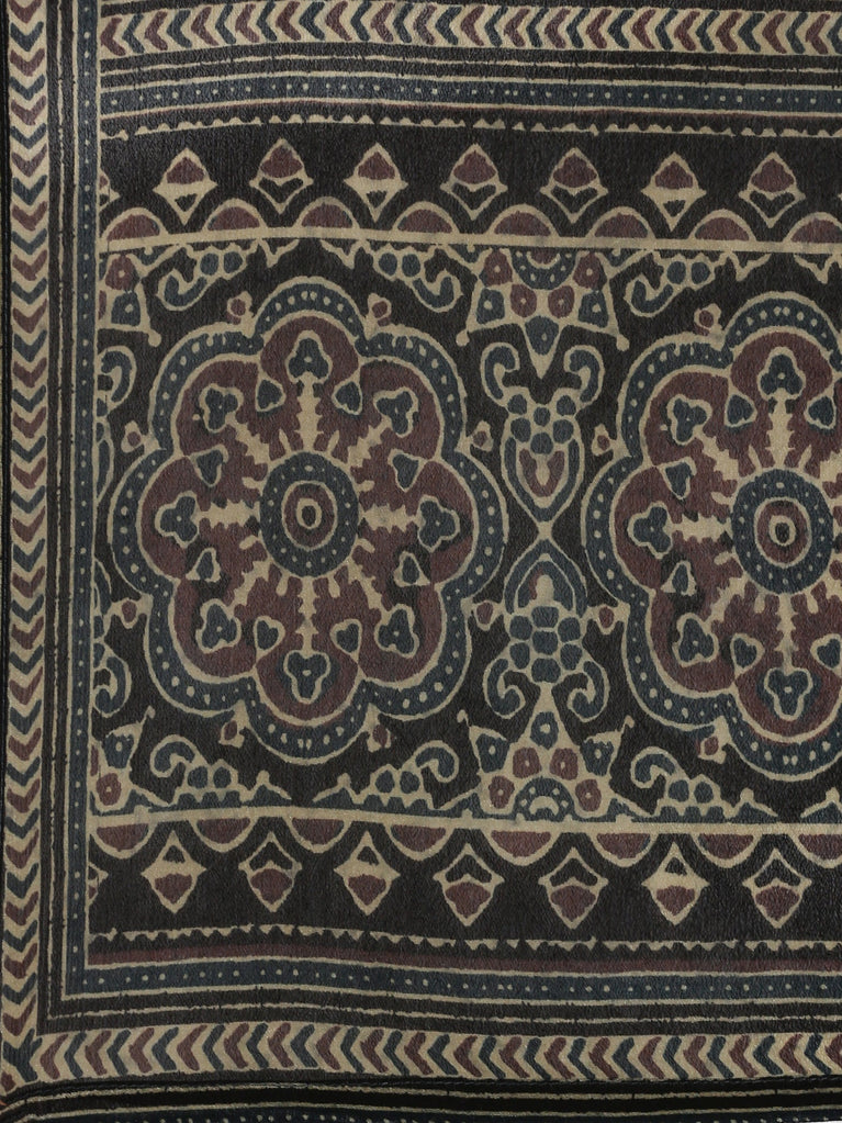 Cream and black printed gold zari embroiderey three suit set