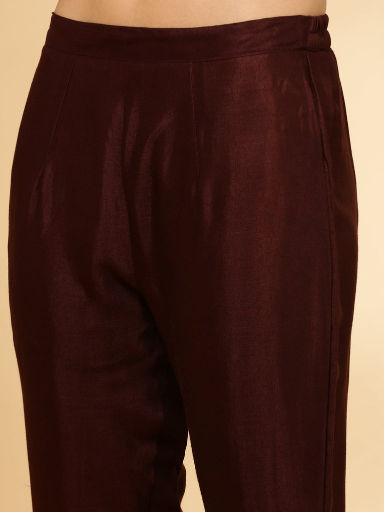Brown Banarasi Hand Embroidery Three Piece Set