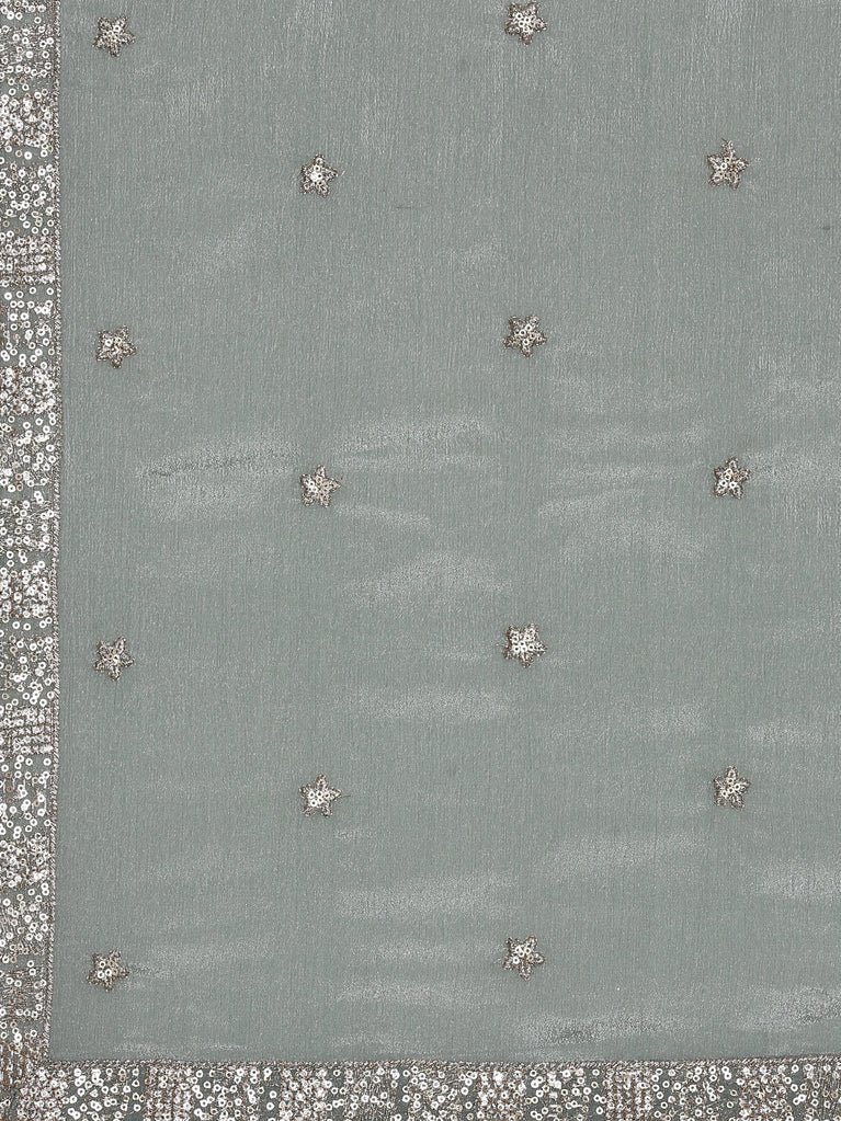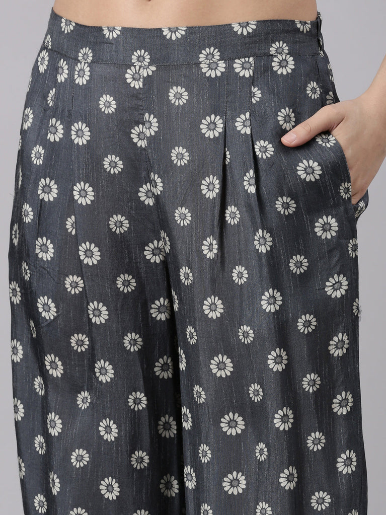 Gray Muslin Printed Three Piece Set