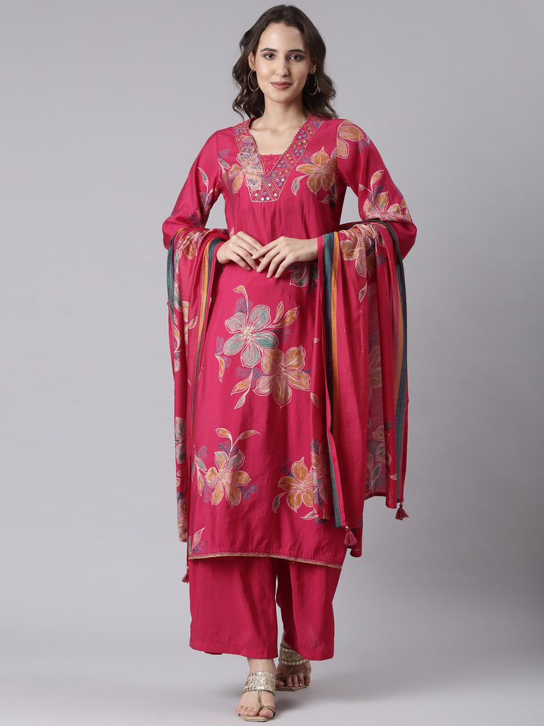 Dola silk rani printed three piece set