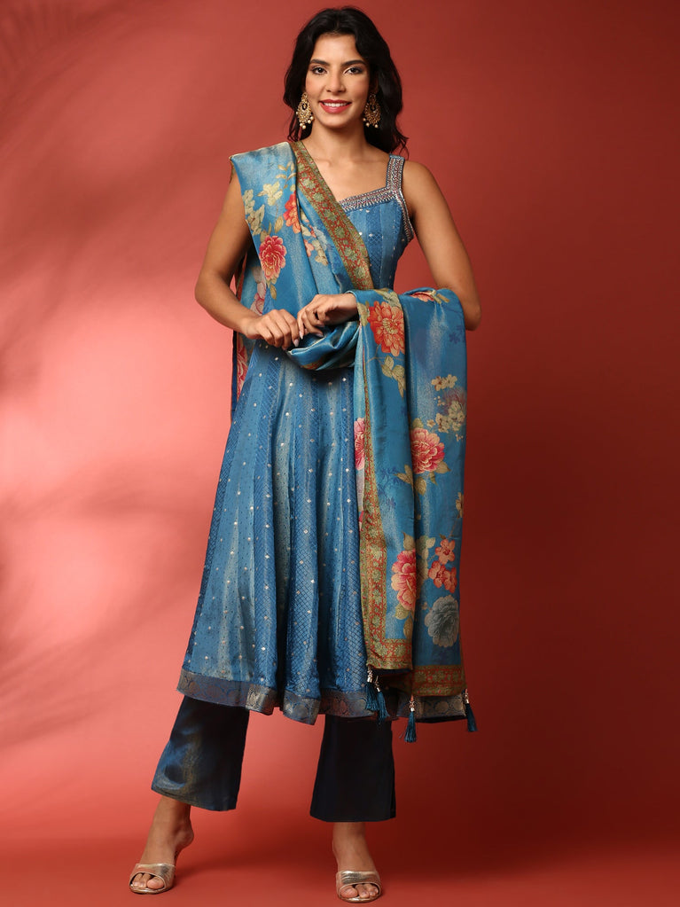 Ferozi tissue fabric anarkali three piece suit set