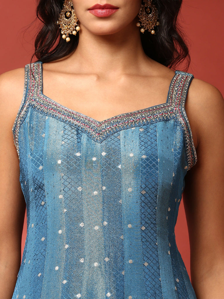 Gajari Embroidered Vichitra Silk Short Kali