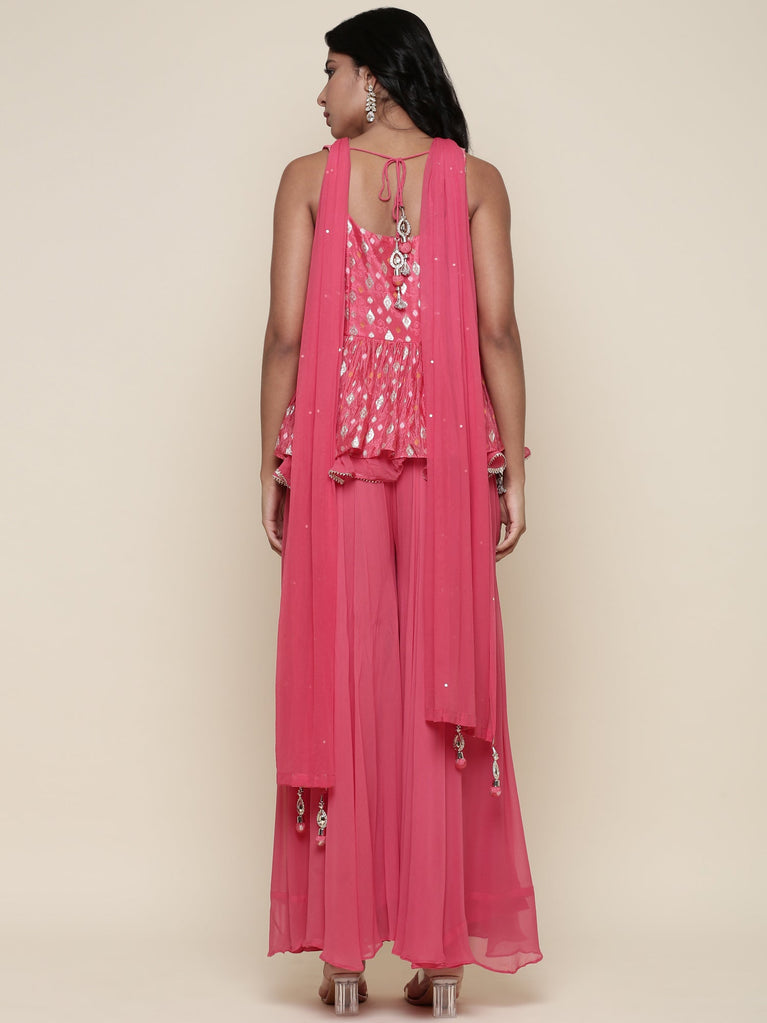 Ghajari georgette peplum and palazzo three piece set