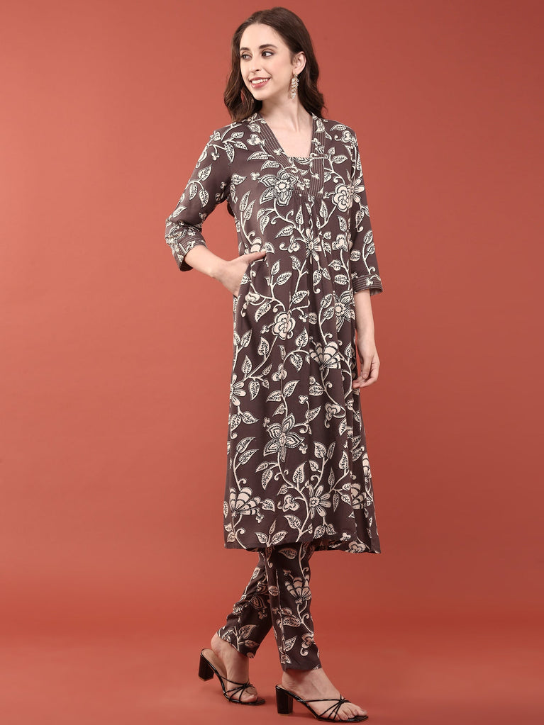Grape Rayon Floral Printed Two Piece Set