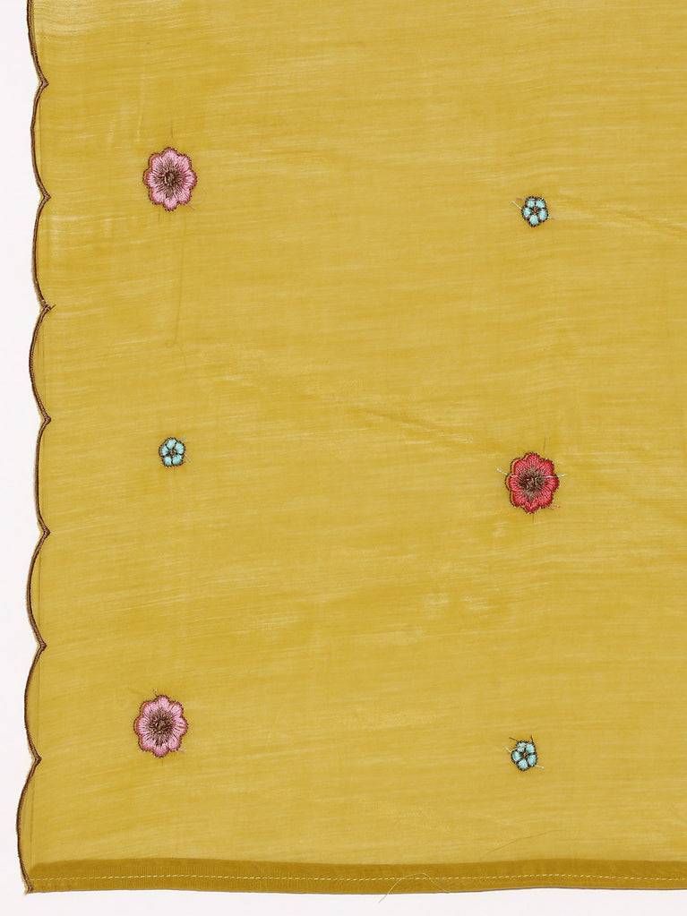 Green Chanderi Embroidery Aline Three Piece Suit Set