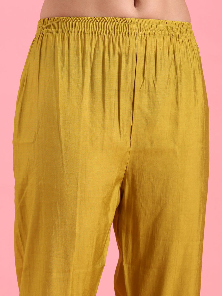 Elevate your ethnic wardrobe with this sophisticated three-piece ensemble crafted from luxurious gold modal silk. The collection features an exquisite floral digital print that seamlessly blends traditional aesthetics with contemporary design. Each piece is meticulously tailored to offer superior comfort and an elegant drape, making it ideal for festive occasions, celebrations, or refined everyday wear.