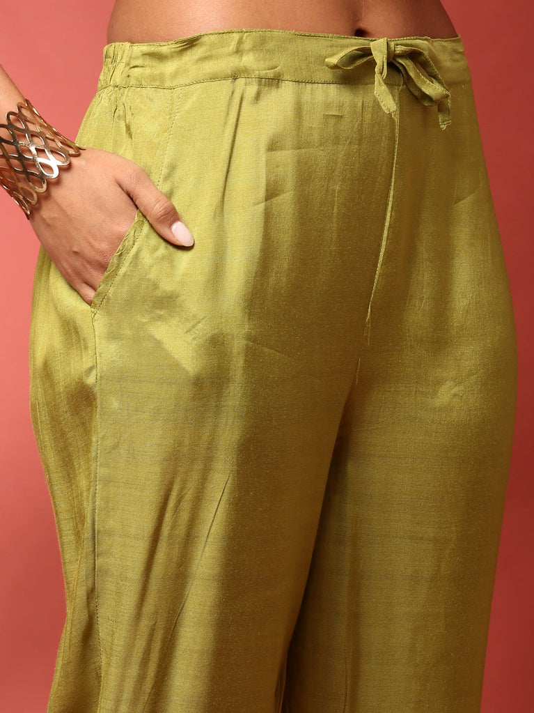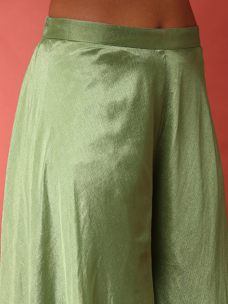 Green Silk Heavy Sequence Embroidery Crop Top With Palazzo