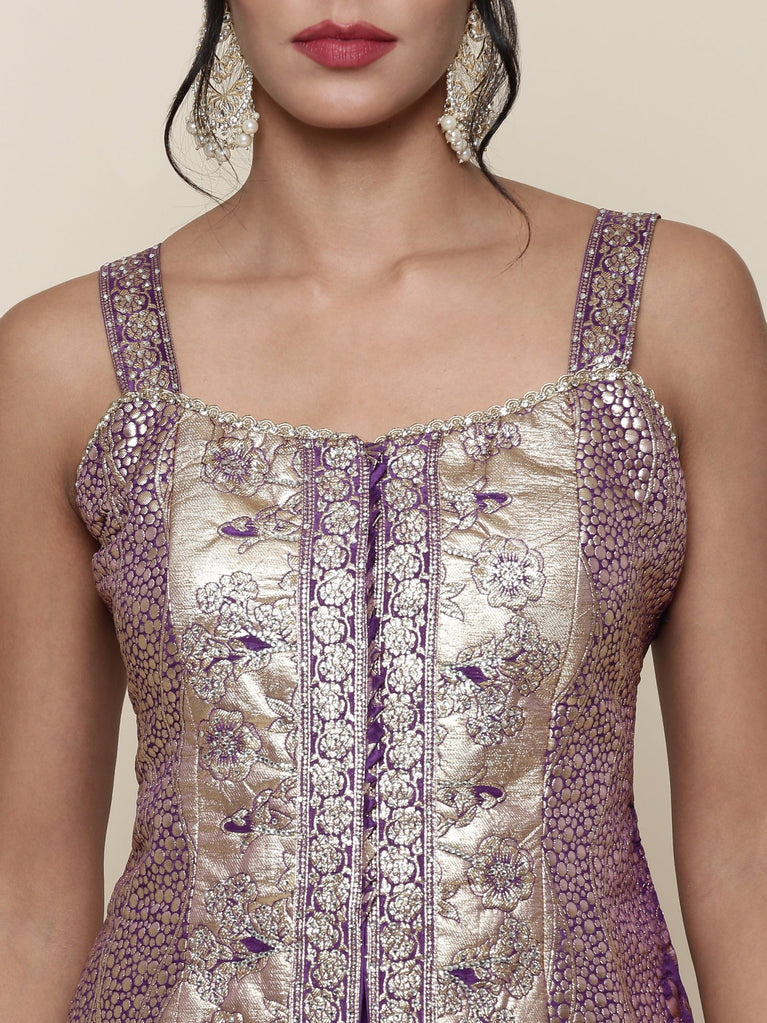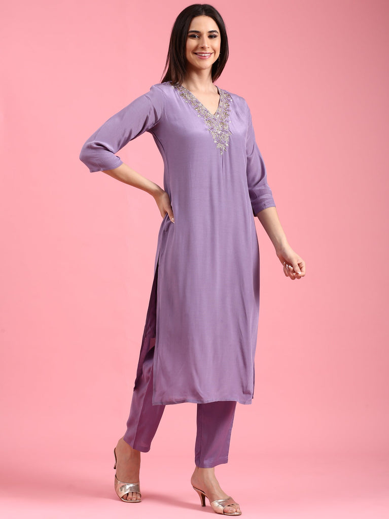 Lavender Chinnon Hand Embroidered Anarkali Set