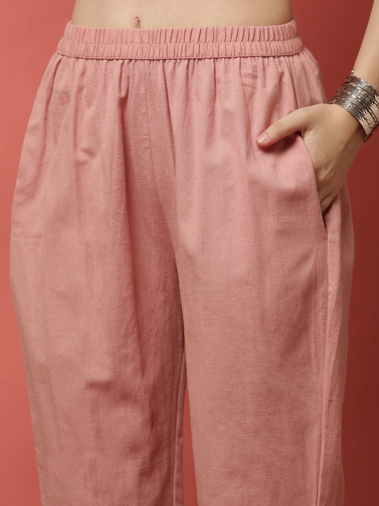 Elevate your wardrobe with this light pink linen two-piece suit featuring delicate thread embroidery on the neck, sleeves, and dhaman. The intricate embroidery adds a touch of elegance, while the soft linen fabric ensures comfort and breathability. Finished with charming lace accents, this set blends traditional craftsmanship with modern style, perfect for any occasion where you want to feel graceful and effortlessly chic.