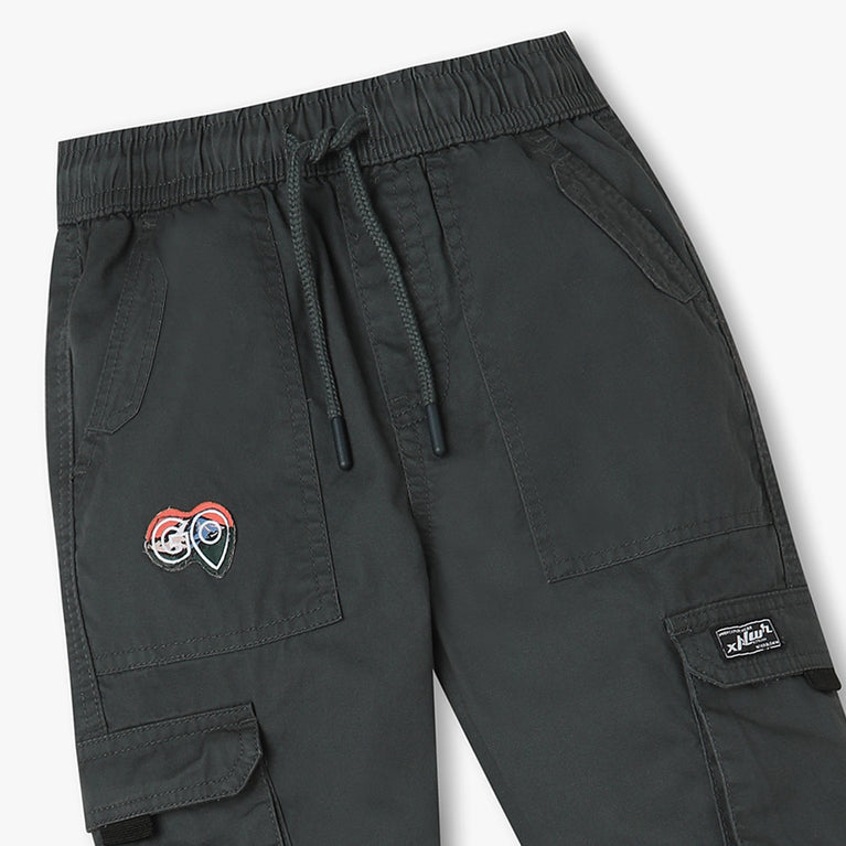These solid pattern regular fit cargos has mid rise waist. Made from cotton, your kid's feel comfortable wearing the product.