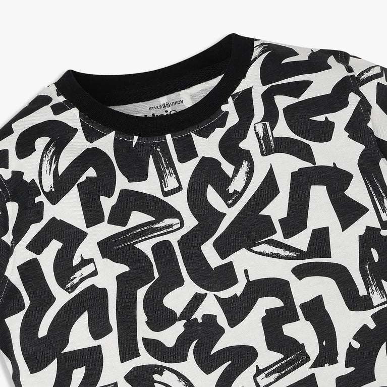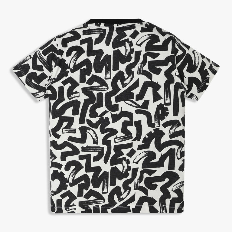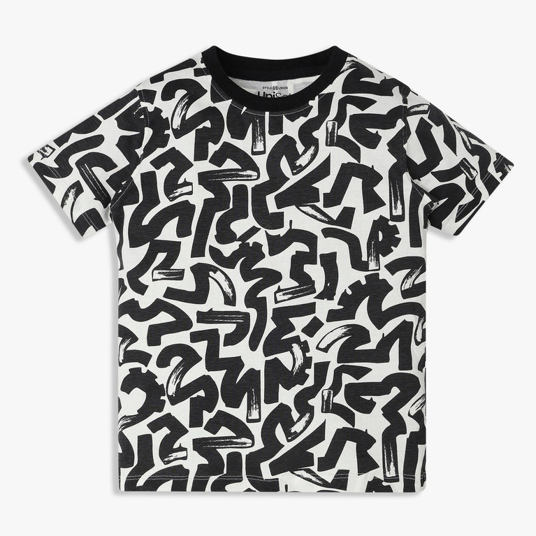 Discover the ultimate comfort and style with our Boy's Cotton Crew Neck Graphitee T-Shirt. Crafted from soft cotton, this regular fit tee features an eye-catching all-over print, perfect for any young trendsetter.