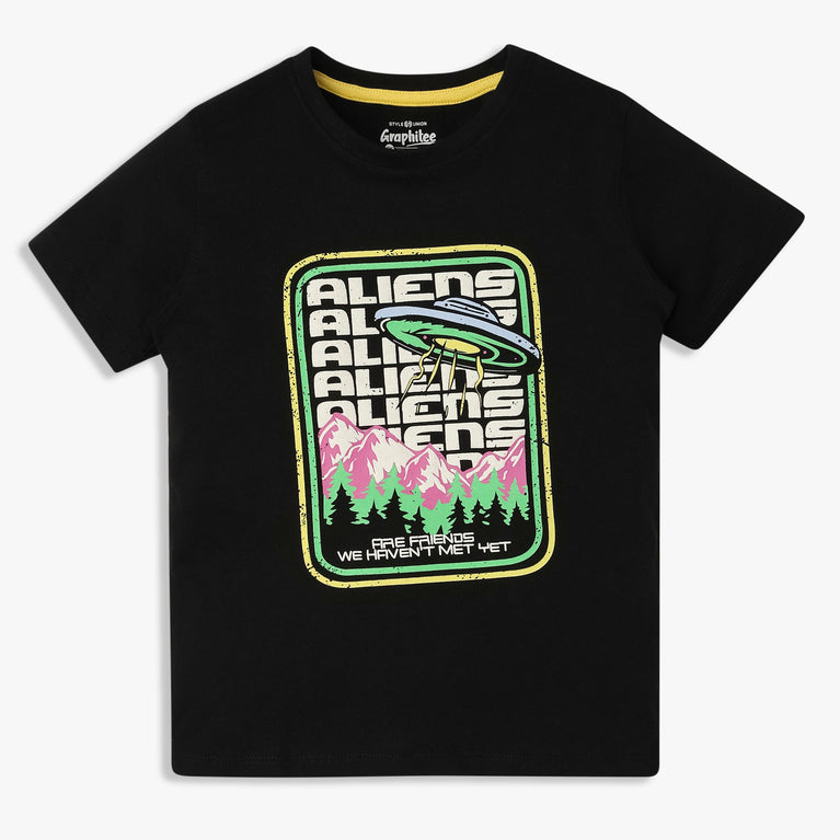 Introducing the Boy's Cotton Crew Neck Graphitee T-Shirt, a perfect blend of comfort and style for your young adventurer. Made from high-quality cotton, this t-shirt features a striking graphic design that adds a fun twist to any outfit.