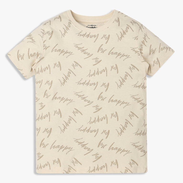 Elevate your young one's casual wardrobe with our Boy's Cotton Crew Neck Weekend T-Shirt. Designed for comfort and style, this all-over print tee is perfect for everyday adventures.