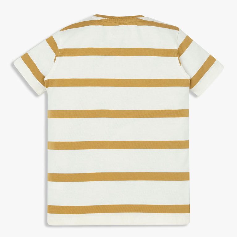 Experience the perfect blend of comfort and style with our Boys Striped Crew Neck Weekend T-Shirt. Crafted from 100% cotton, this t-shirt offers a soft touch against the skin, ensuring all-day comfort for your little one. The classic striped pattern adds a touch of timeless style, making it a versatile addition to any wardrobe.