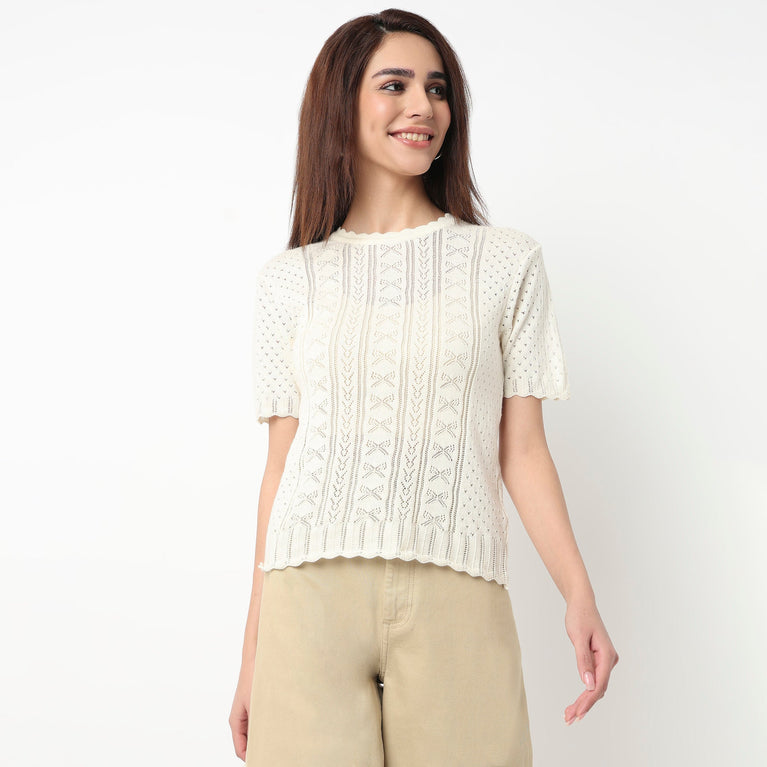 Cotton Full Sleeve Flatknit Top