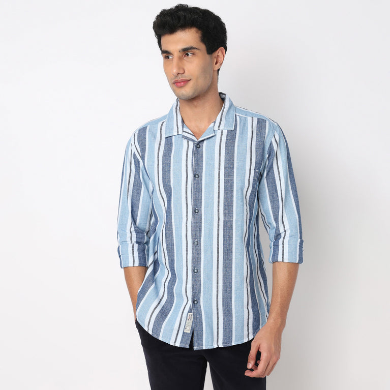 Cotton Striped Cuban Shirt