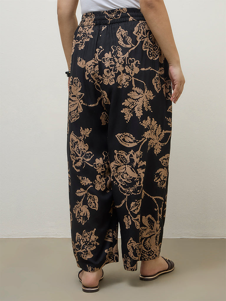 Diza introduces these black ethnic pants brought to life with all-over floral prints, lending a vibrant yet versatile charm. Crafted from a lightweight, flowy fabric, they feature an elasticated waistband for a secure, effortless fit, while side pockets add everyday ease.