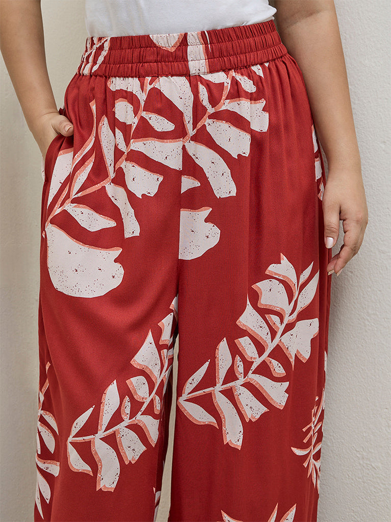 These red palazzos from Diza bring a vibrant touch to everyday ethnic dressing. Designed with bold botanical motifs, a wide-leg silhouette, and soft, breathable fabric, they feature an elasticated waistband, adjustable drawstrings, and side pockets for comfort through the day.