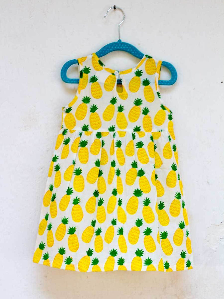 Ananaas Organic Cotton Block Printed Dress with a Pocket