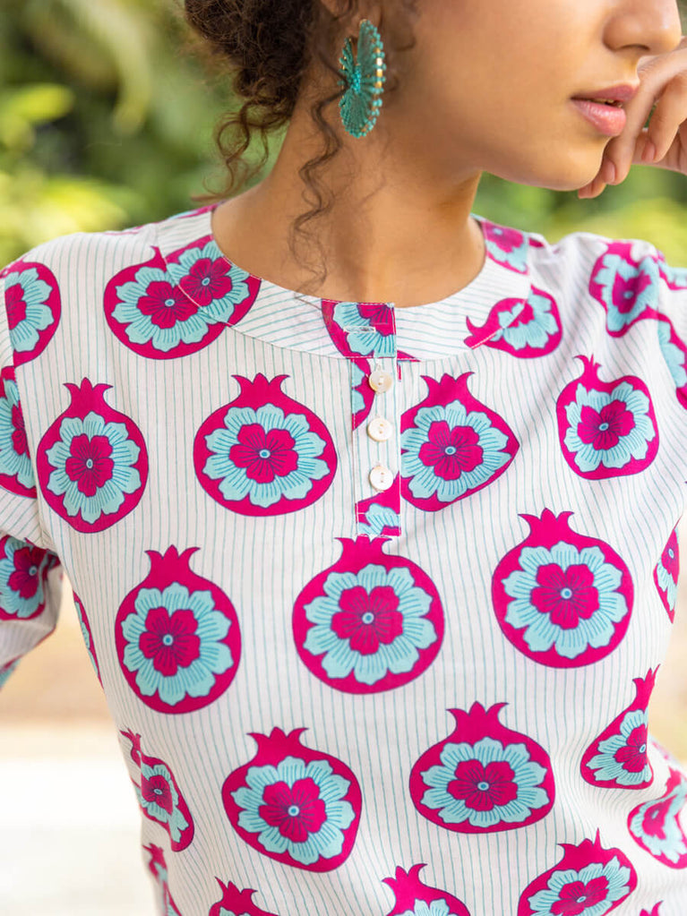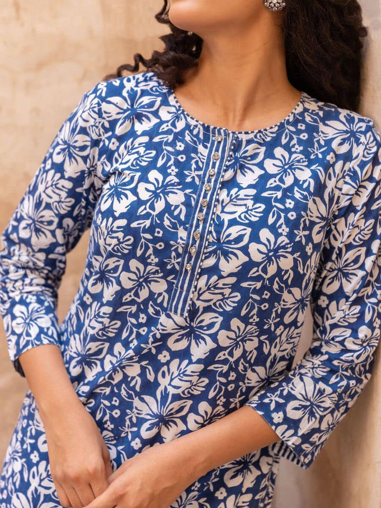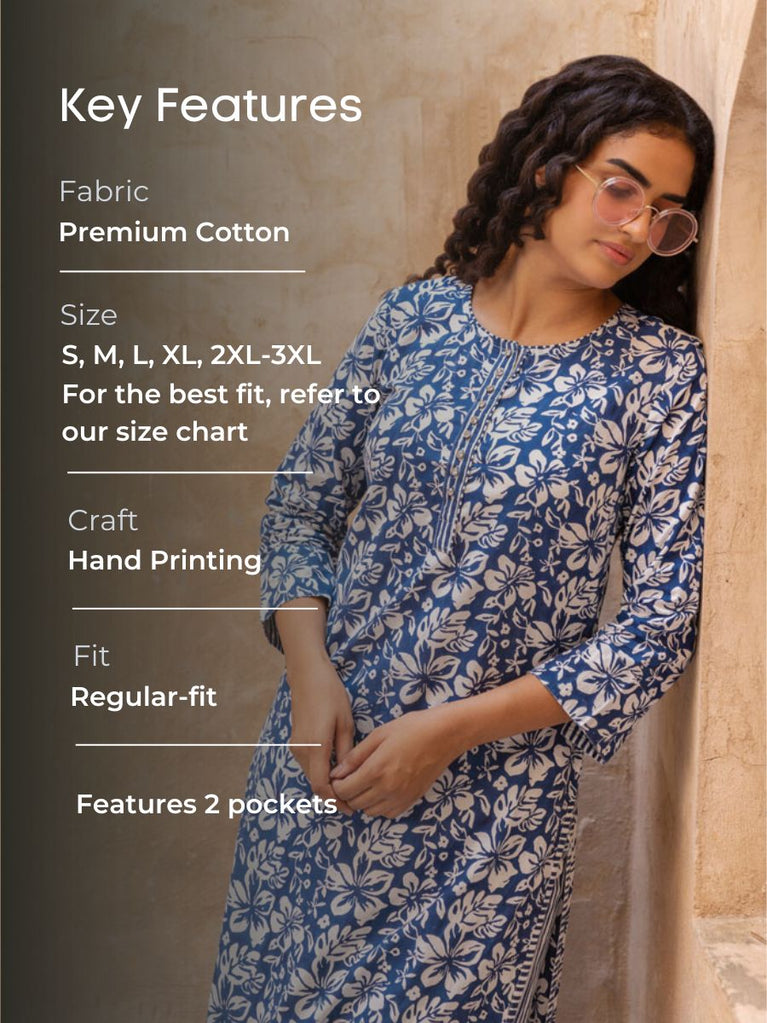 Ruhi Block Printed Cotton Mid Length Kurta