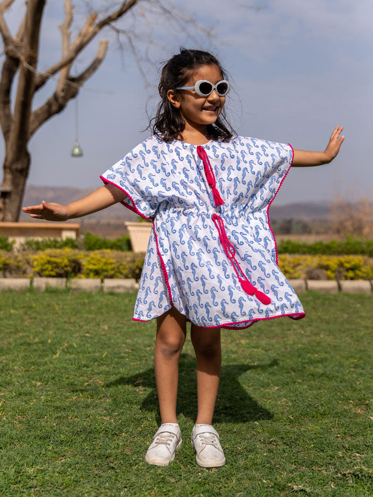 Seahorse Organic Cotton Block Printed Kaftan for Kids