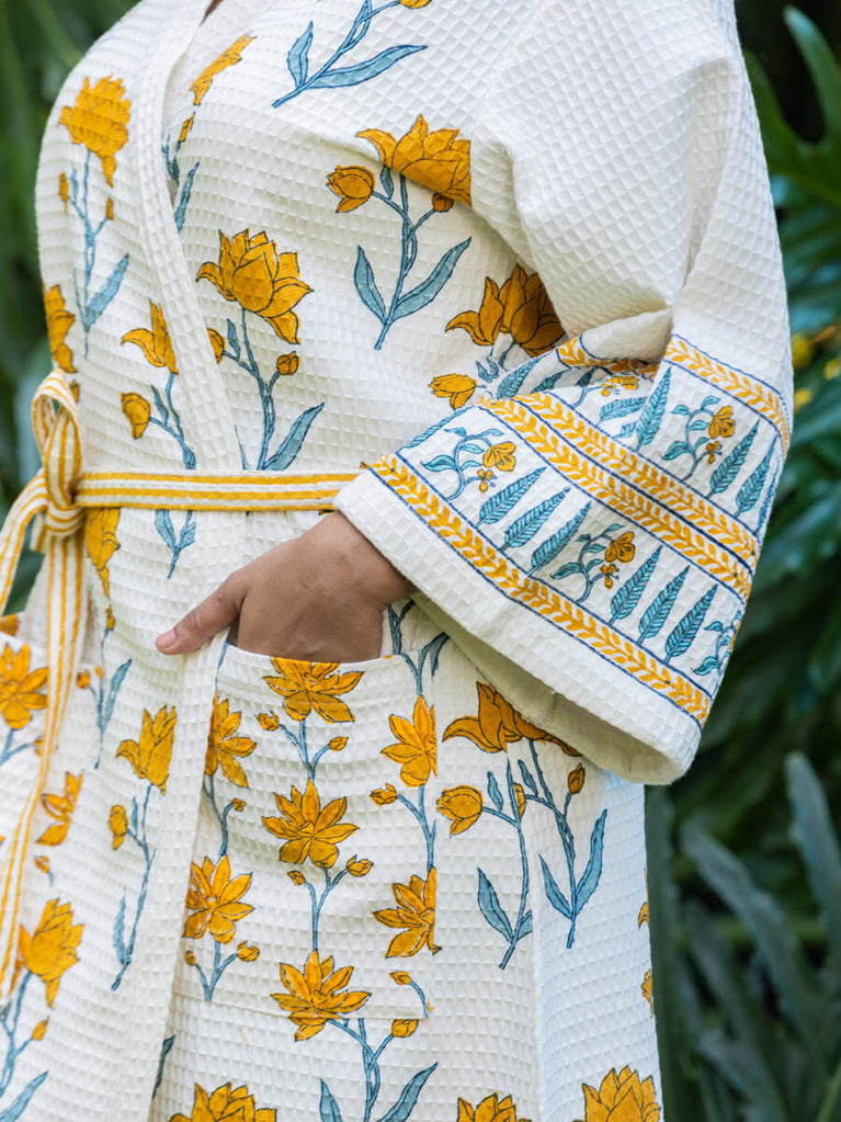 Sangeet Luxury Block Printed Cotton Bath Robe