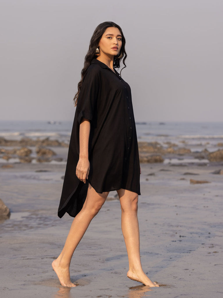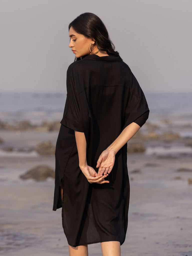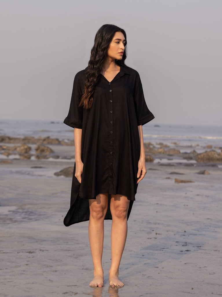 Sajdaa Black Oversized Asymmetrical Long Shirt
